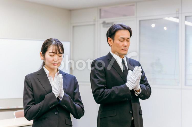 写真素材:白手袋をつけた男女(合掌)