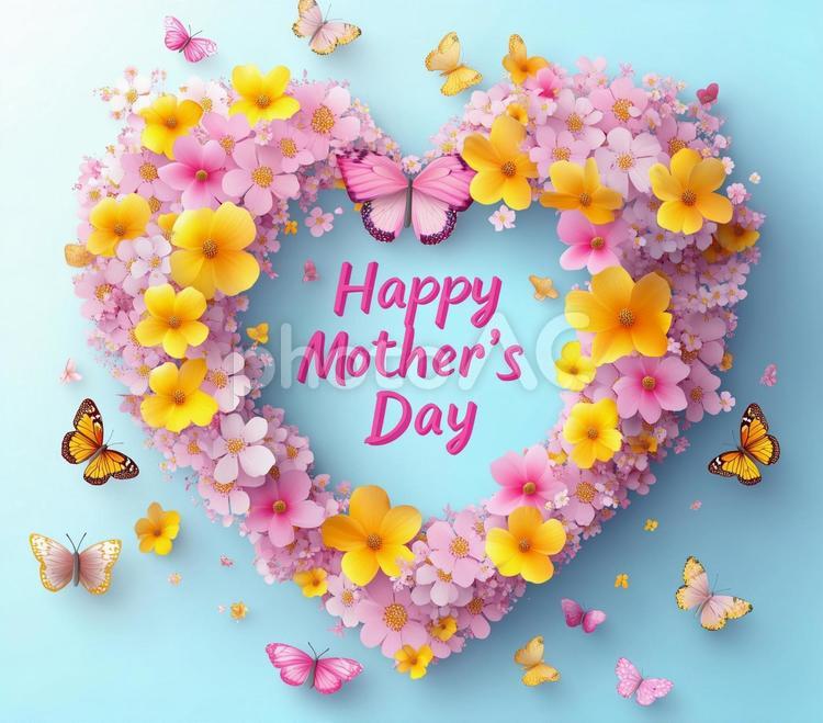 写真素材:花と蝶が彩るハートの母の日ギフト