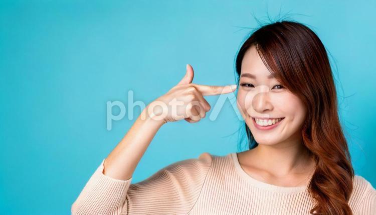 タイトル:目元を指さす日本人女性
