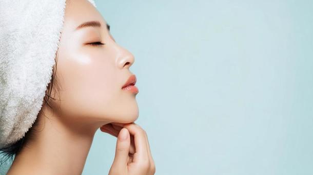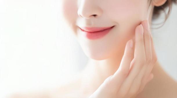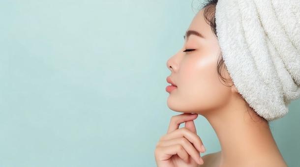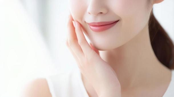 説明:素肌の美しさが際立つ女性モデルのアップ写真。ナチュラルな美しさや清潔感を強調したい美容系・スキンケア商品の広告やメディア素材として活用しやすい1枚です。